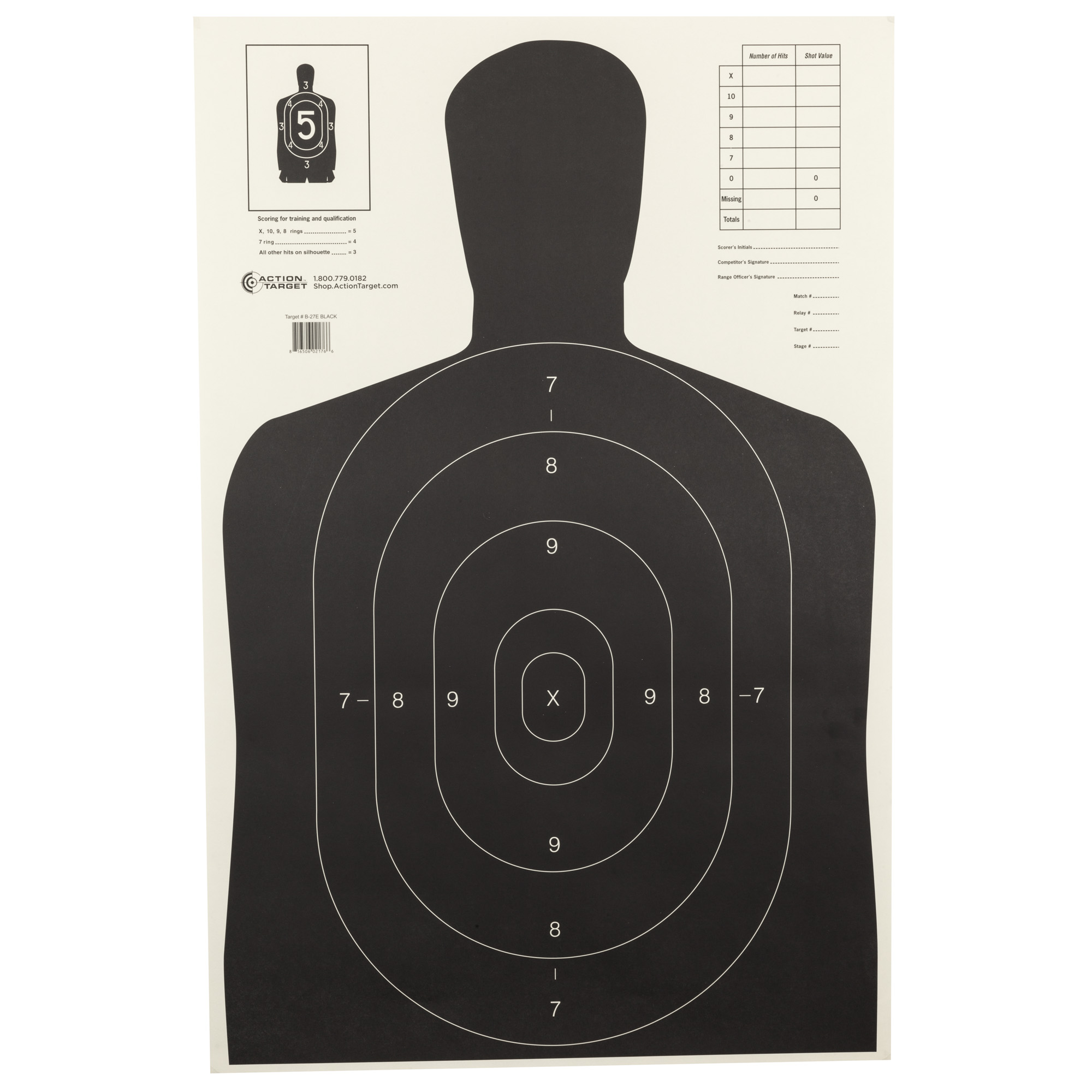 Action Target B-27E Economy Target, Black Silhouette Cut Off Below Ring 7, 23×35, 100 Per Box B-27EBLACK-100