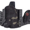 An ergonomic, mission-adjustable, RDS-compatible, multi-positional, deep concealment IWB hybrid thermoplastic holster. Its distinctive features enable concealed carry for a wide range of handgun fits from various carry positions while allowing a full firing grip prior to drawing. The design includes passive retention and adjustable tension, enabling a finely tuned fit and smooth draw. This evolution of the IncogX features a series of clips that provide more adaptability to the user while maintaining the original goals of improved grip, concealment, and function. The clips open outward and slide down with the holster, naturally locking over the belt. An actuated finger tab flexes to open, allowing quick installation or removal from the belt. An improved clip strut design combines functionality with customized concealment shims that can be easily installed or removed without tools. All IncogX models come with clip strut shims in three different concealment sizes: 1/8″, 1/4″, and 3/8″.