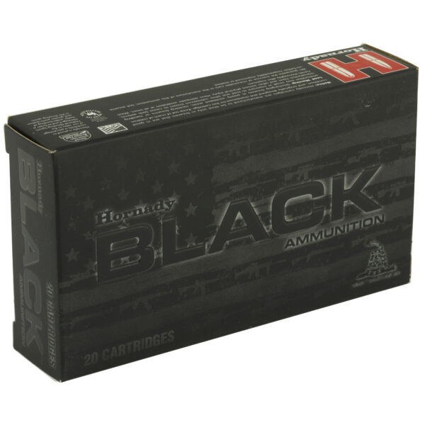 Hornady BLACK(R) ammunition features versatile loads optimized for excellent performance from America’s favorite guns. Loaded with legendary Hornady(R) bullets, Hornady BLACK(R) ammunition is designed to fit, feed and function in a variety of platforms.