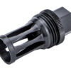 This Quick Detach (QD) flash hider muzzle device will allow a shooter to utilize any of the R556, R556A1, R556A2, R30A1, or R30A2 suppressors on weapons that have 5/8×24 muzzle threads. Featuring a birdcage-style flash hider, a taper mounting surface, and a ratcheting secondary retention system, this QD flash hider muzzle device will ensure precise and repeatable performance from your suppressor. Constructed of heat-treated Chromoly Steel with OXyN gas nitride finish.