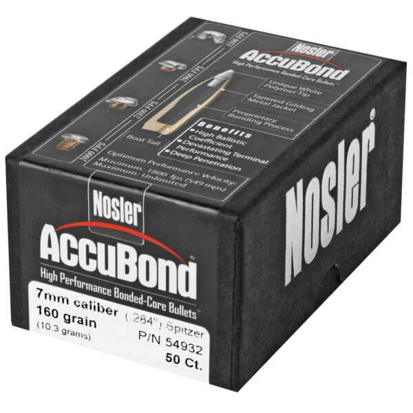 Nosler AccuBond, .284 Diameter, 7MM, 160 Grain, Spitzer Boat Tail, 50 Count 54932